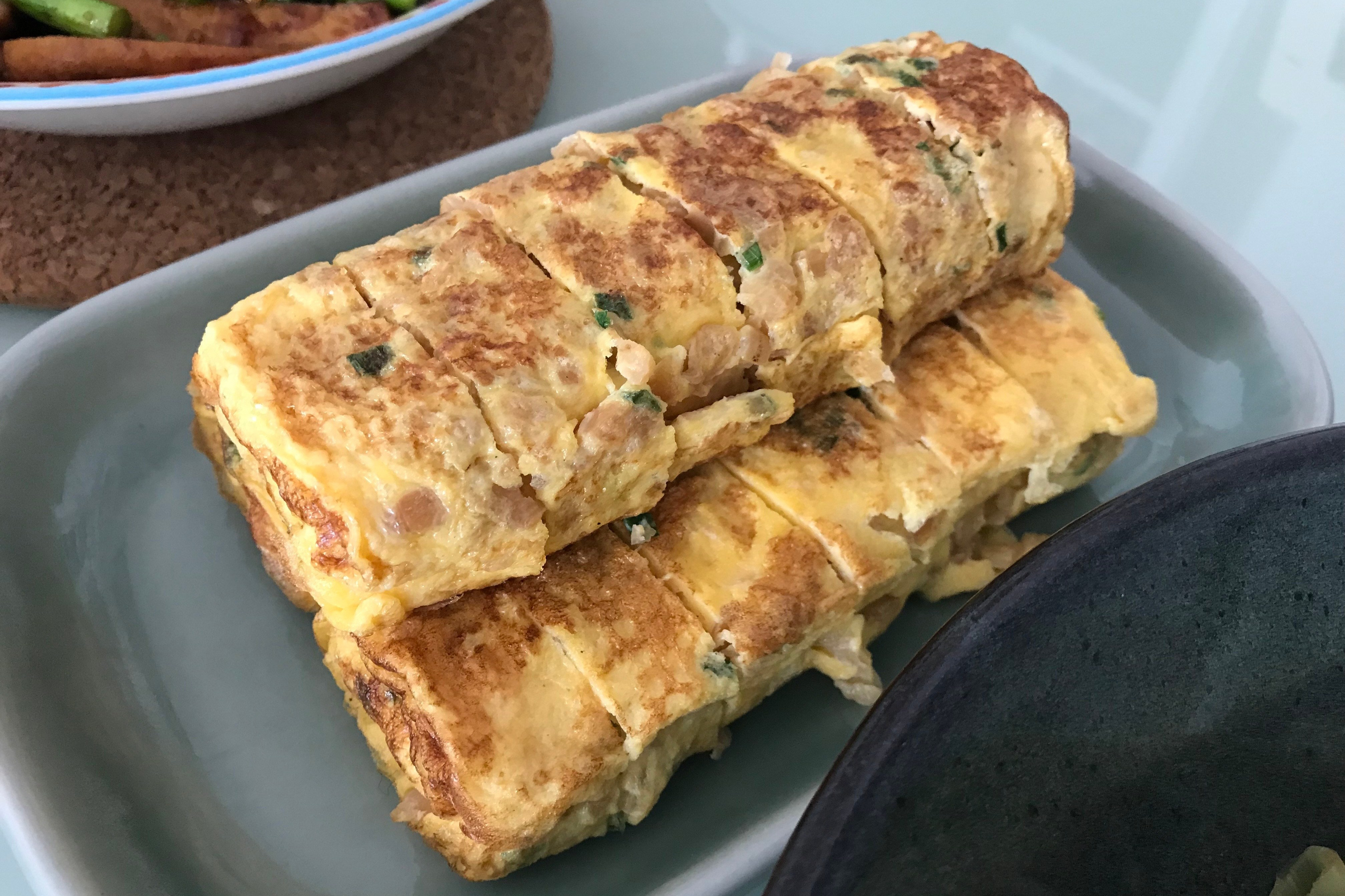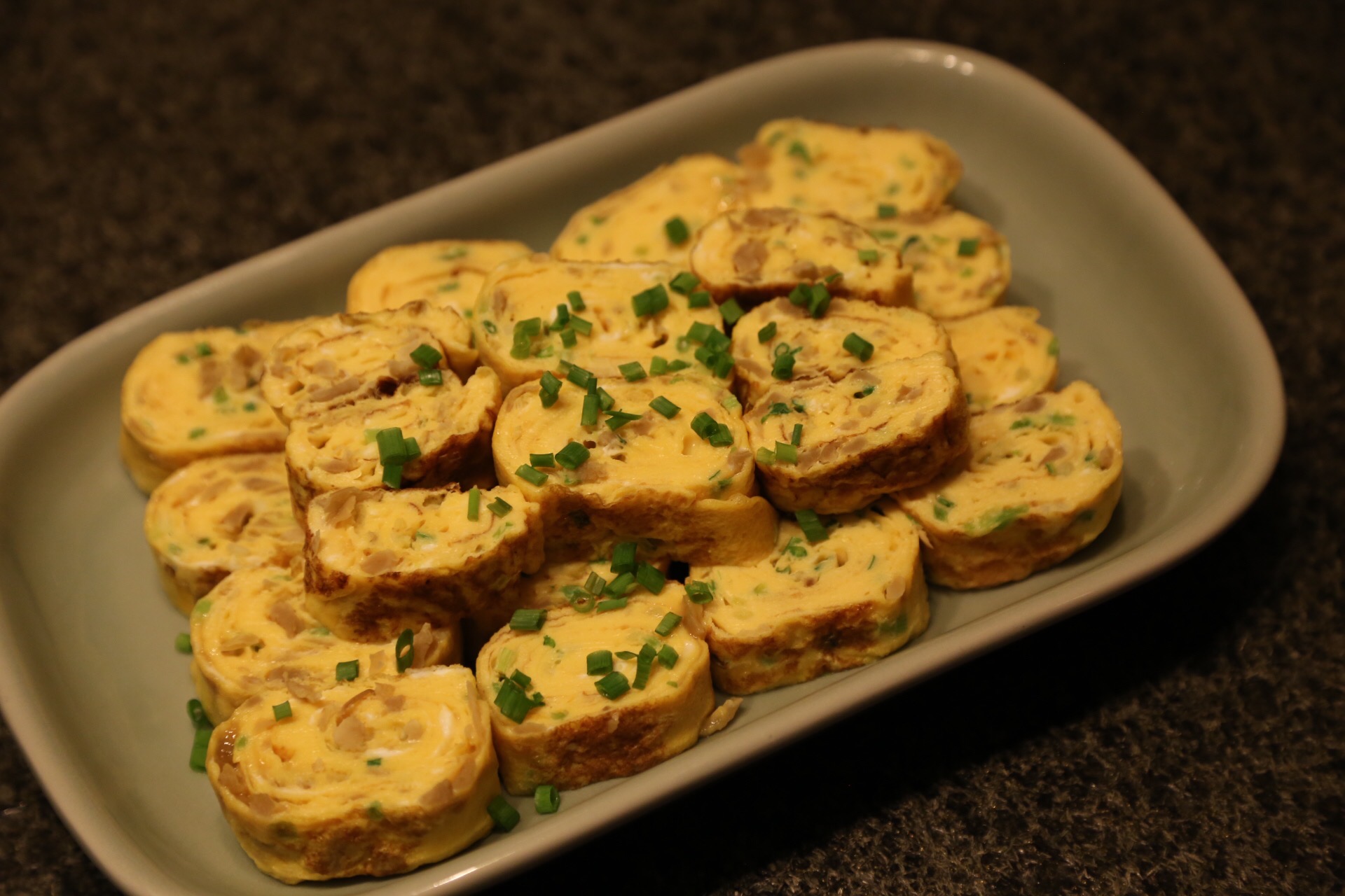 除了早餐,因為有個好朋友是素食者,他來我家作客的話,我基本上都一定會做一道蛋料理,之前看很多facebook視頻教做日式蛋卷,我也買了個神器來做蛋卷,好朋友是台灣人,因此我就用了日本蛋卷概念做了一個蔥花菜脯蛋卷,做法很簡單,雞蛋要加一點雞湯、鹽、米酒調味,菜譜切碎炒香跟蔥花一起放入雞蛋液裡,然後就像大部分視頻教大家一樣,一層煎得差不多捲起來,再加蛋液,就這樣一層層煎,再卷就成為蛋卷了。很抱歉之前做的時候,沒有錄製視頻,以後可以有一些教學視頻,更好的讓大家“看”明白到底我在說什麼,哈哈!