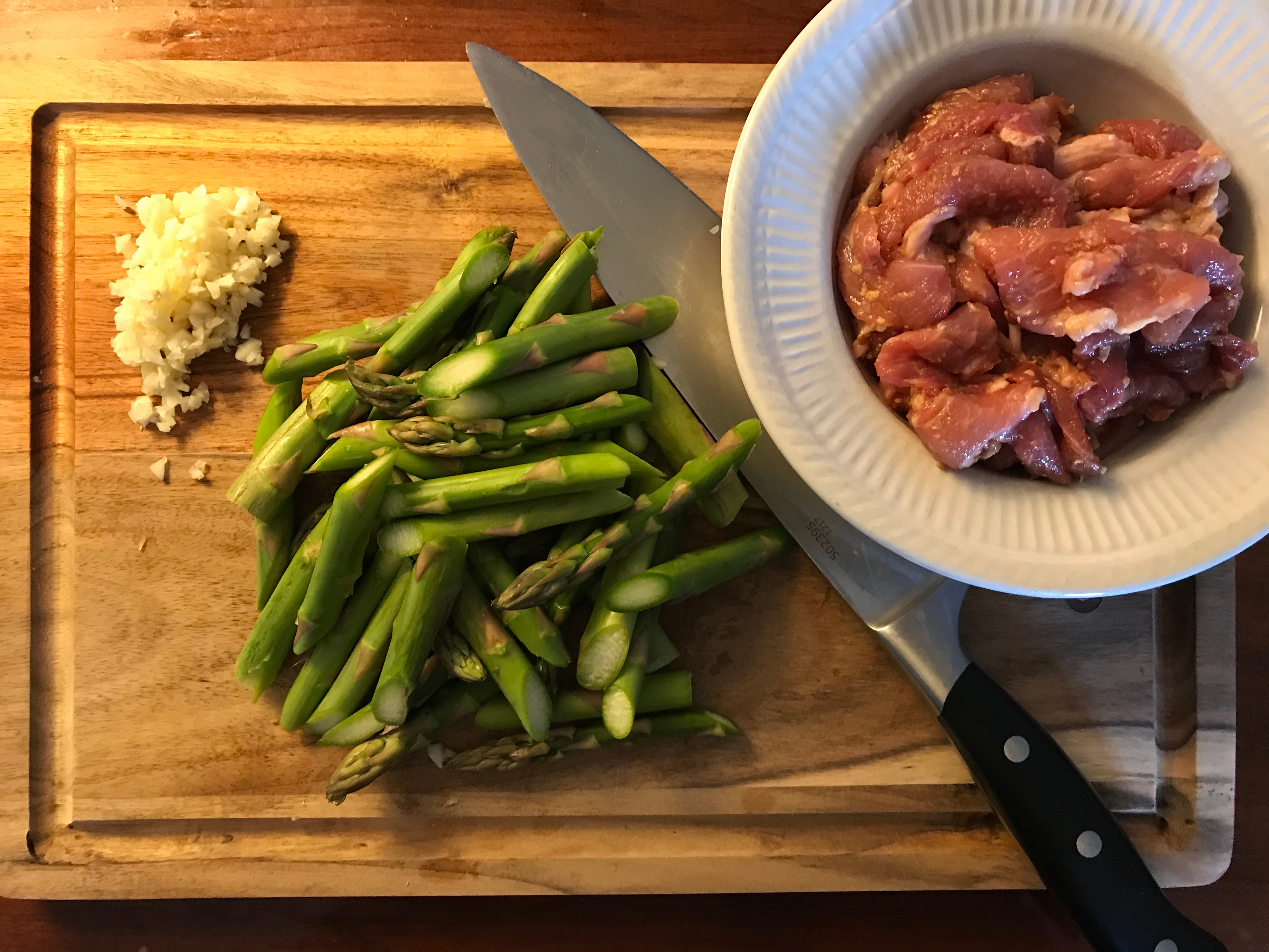 除了味噌湯,很多用味噌做出來的菜我跟西人都喜歡,疫情原因,廚房和食材都有限,剛好有些豬肉,所以,就決定再買點蘆筍做個我認為應該是中日混合的炒菜 – 味噌梅花肉炒蘆筍!