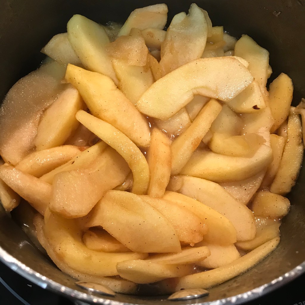 - 蘋果削皮切片,放進鍋裡加入其它材料中慢火煮直到蘋果變軟 Peel the apples and cut into thin slices. Cook the apple slices with all other ingredients in low medium heat until apples are soft.