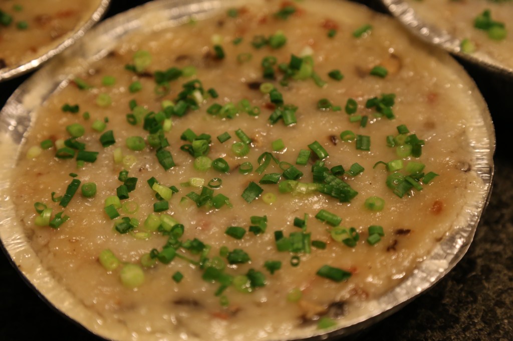 Radish cake – a very popular Hong Kong Dim Sum nowadays. When I was a kid, radish cake was only made and eaten during Chinese New Year (CNY). Cake (Gao in Chinese) has very similar pronunciation as “high” and thus it has a symbolic meaning “progressing up/high”. We used to make radish cake at home before CNY. My mom and my aunt will make quite a lot and so we can serve our relatives radish cake when they came visit us. Sometimes we would even send this as gift. They used the best (and a lot of!) ingredients. The radish cake was so delicious that we never had to buy from store. Later, it is getting popular to have radish cake in restaurants and they created some new recipe e.g. stir fry radish cake with XO sauce. I personally still prefer the more traditional way of eating radish cake.