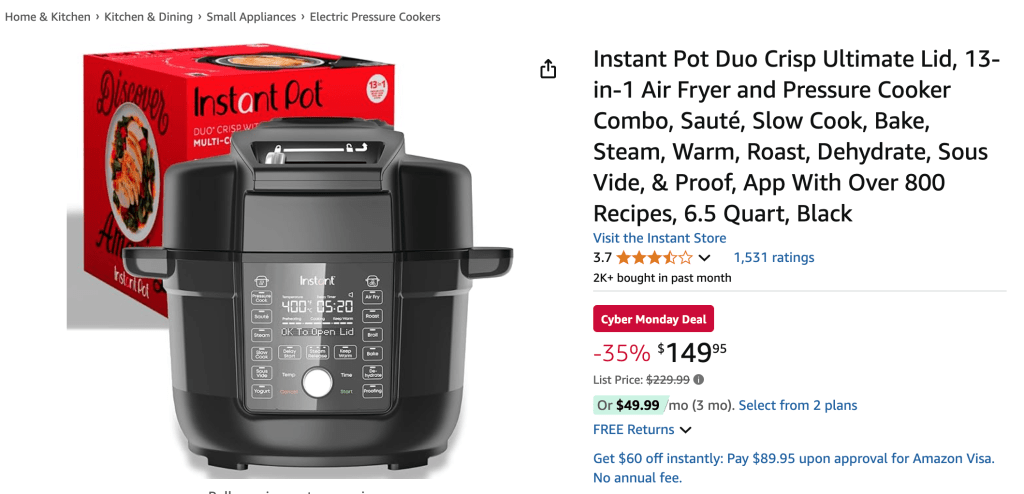 2. Instant Pot Duo Crisp 11-in-1: Air Fry & Pressure Cook for 41% Off